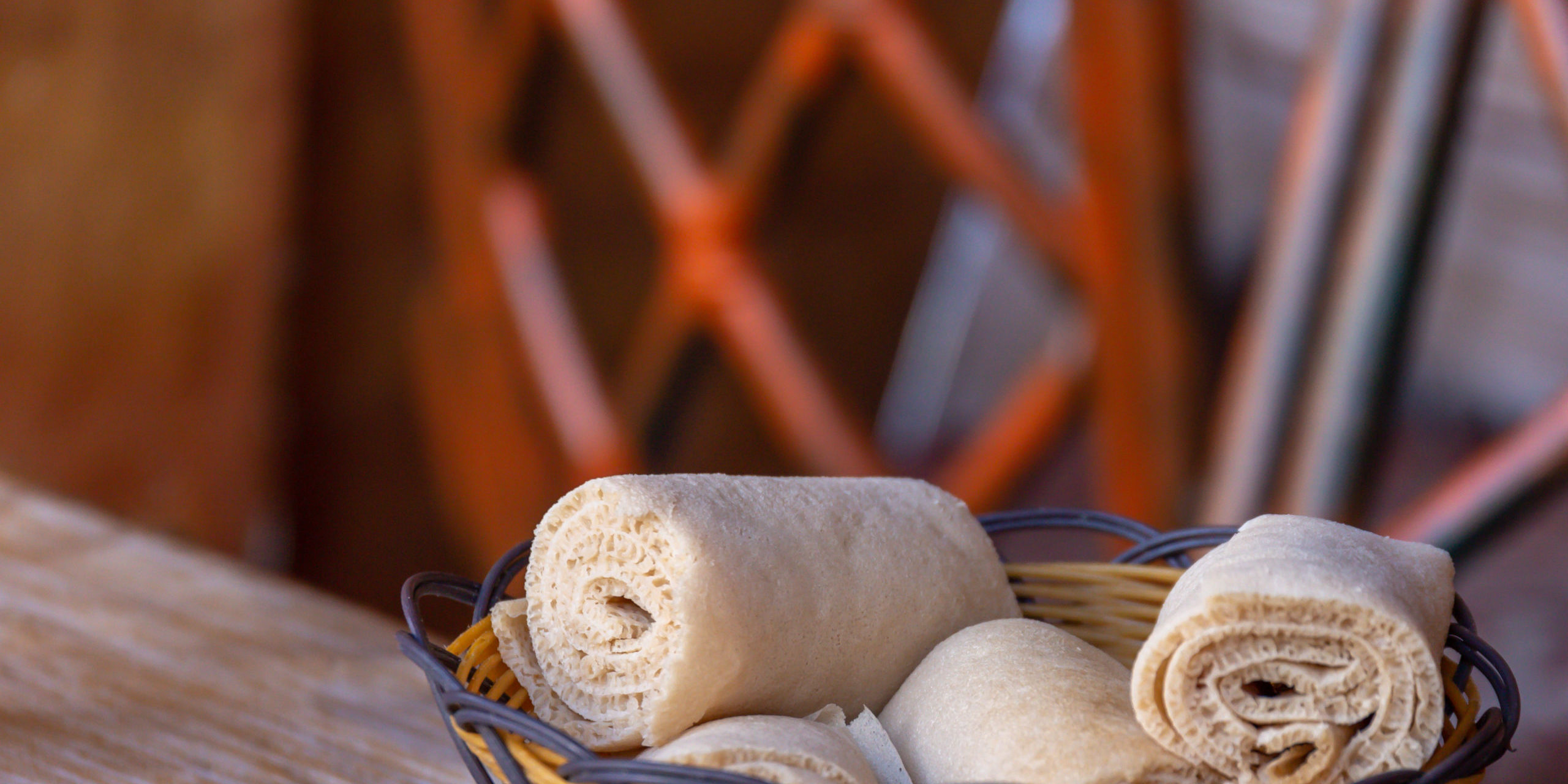 L’Injera est une sorte de grande crêpe, caractéristique de la cuisine éthiopienne et érythréenne. C’est une galette que l’on recouvre d’une variété de sauces et qui, dans son ensemble, représente le plat principal de ces deux pays.